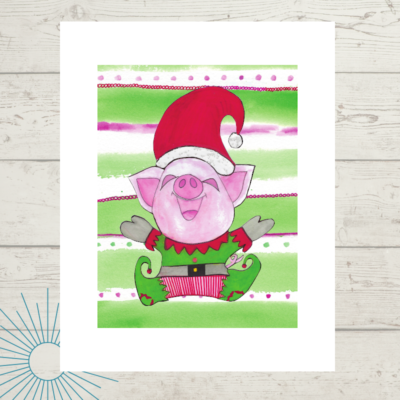 Spread some holiday cheer with this adorable little pig. It will add whimsy to your walls, and bring a smile to your face each time you see it.