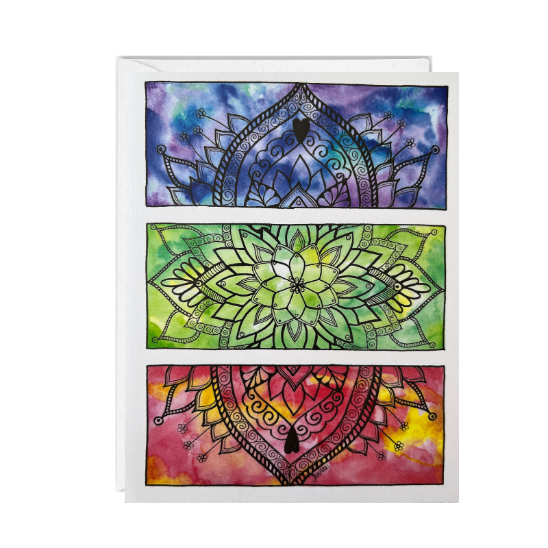 A perfect card to celebrate in someone's growth, their opening to new opportunities and growth. Or a perfect card for those in the healing world who appreciate the chakra colors and awakening.